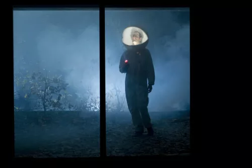 La struttura visiva e architettonica della scena, grazie al suo curatissimo realismo, ben si inserisce nella questione creando l’imprescindibile contrappunto illusorio alla metateatralità che allo spettacolo fa da cornice. È Vourc’h infatti, vestito da astronauta, a spiegarci che ogni spettacolo di Vivarium comincia con l’ultima scena del precedente e termina con un assaggio del successivo.