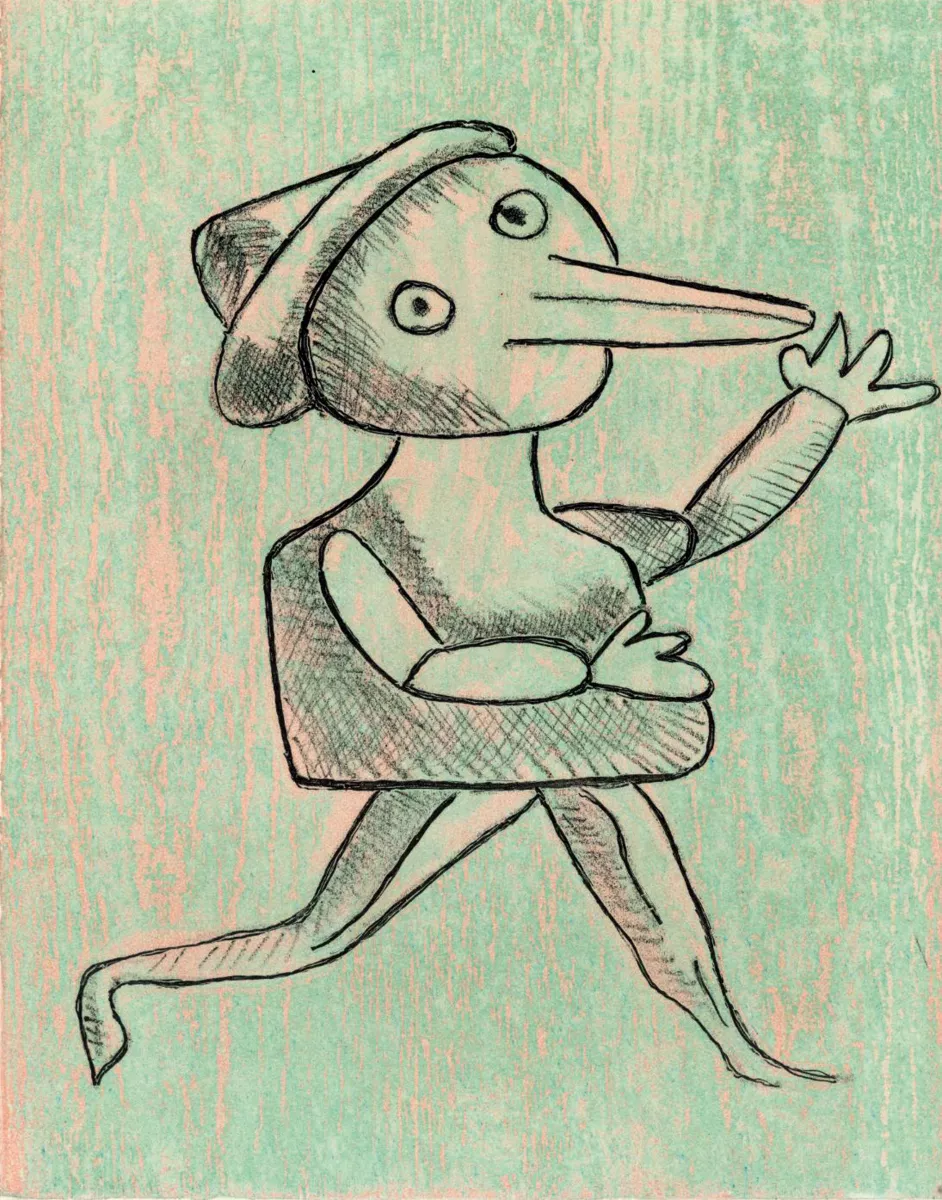 Pinocchio è prima di tutto un bambino, per questo piace ai bambini. Si tratta di uno di quei bambini che un tempo venivano detti “caratteriali” (Giovanni Jervis), quelli che non riescono mai a stare fermi al loro posto e si muovono sempre – un ipercinetico –, uno di quelli che non ne fa mai una giusta e si mette sempre con i peggiori della classe, pur essendo fondamentalmente buono. Dal momento che il suo motore invisibile è il desiderio, Pinocchio va dove vuole ignorando ogni divieto. Non è né buono né cattivo. Nella storia scritta da Collodi i criteri morali li usano solo gli adulti. Questa è la ragione per cui chi legge – i bambini soprattutto – non può fare a meno di pensare: quello sono io. Poi inevitabilmente si cresce. Diventare adulti significa rinnegare Pinocchio? Forse no, ma un poco forse sì. Si è totalmente Pinocchio solo da bambini, è il ricordo di ciò-che-eravamo che ci segue da grandi. Ma è troppo tardi.