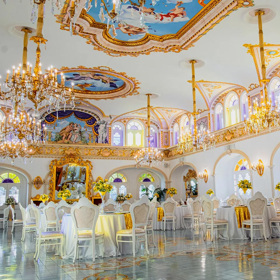 Più inquietante è un altro programma famoso dedicato ai matrimoni su Real Time, Il castello delle cerimonie, in onda dal 2014. Qui è l’ambientazione a costituire la costante poiché si tratta del Grand Hotel La Sonrisa di Sant’Antonio Abate, gestito da Donna Imma Polese con il marito, un edificio a metà strada fra il castello di Cenerentola e la tristemente famosa Neverland di Michael Jackson. Non è possibile liquidare questo format in poche parole poiché si tratta di una surreale americanata in salsa partenopea, in cui persone appartenenti a classi sociali popolari vengono immesse per una giornata in una sorta di Disneyland matrimoniale in cui l’unica cosa reale sono le pantagrueliche portate di cibo e le fauci dentro cui gli invitati le fanno sparire.