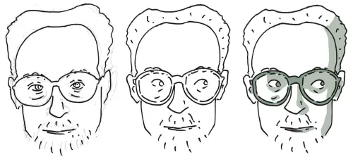 Ci sono dei disegni di Primo Levi? È una delle prime cose che mi sono chiesto quando ho iniziato a lavorare a Una stella tranquilla. È stato bellissimo ricordarsi che non solo dei disegni c’erano ma avevano anche una storia particolare: disegnare è infatti una delle prime cose che Levi fa quando mette le mani su un computer (uno dei primi Macintosh). Invece di usarlo per lavorare lo usa per giocare a scacchi e appunto per disegnare. Disegna dei golem e dei gufi (che poi finiscono sulla copertina di un suo libro, L’altrui mestiere). Cercando immagini a cui attingere nell’opera di Primo Levi mi sono accorto che i gufi tornavano spesso. Levi si definisce “il gufo notturno che batte alla macchina da scrivere” quando racconta il periodo in cui scriveva Se questo è un uomo, di notte, nella foresteria della fabbrica in cui lavorava subito dopo la guerra. E soprattutto ci sono le teste di gufo che Levi costruiva con il filo di rame. C’è una foto bellissima in cui indossa una di queste “maschere” e che io ho ridisegnato per la copertina di Una stella tranquilla. “Il gufo è il mio autoritratto”, ha scritto Levi da qualche parte, ma per me è anche una maschera. Ho deciso di usarla in copertina perché volevo che si capisse fin da subito che non stavo facendo una biografia di Primo Levi, che il vero Levi, il Levi privato, rimane per noi quasi inaccessibile. Anche il titolo – Una stella tranquilla, tratto da uno dei sui racconti di fantascienza – serve a richiamare questa doppia natura: la stella che a noi appare immobile, tranquilla, ed è un punto di riferimento, ma che al suo interno ribolle.