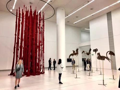 Spiccano specialmente le icone barricadere di capi della rivolta rappresentati con il mitra a tracolla, la bandoliera, ma come se fossero dei San Michele Arcangelo. L’artista spagnolo Daniel Andujar realizza un notevole volume, dal titolo LTI – Lingua Tertii Imperii, che analizza, in omaggio al capitale libro di Viktor Klemperer, l’idioma della dittatura nella sua continua e distorta manipolazione della classicità e la reazione internazionale, tra ciclostili, riviste, volantini. All’Odeion, ossia Conservatorio, spazio notevolissimo, con auditorium brutalista di cemento di grande impatto, rende invece omaggio a un’altra figura capitale, Iannis Xenakis, e da lì presenta, incrociandoli con le notevoli opere pittoriche dell’albanese Eli Hila, che dipinge le spiagge di Albania segnate dai bunker di Hoxha, le partiture e le immagini di sperimentatori musicali come Pauline Oliveros e Alvin Curran. Ci vorrebbe molto tempo per poter vedere tutti i luoghi coinvolti, ma senz’altro il filo con la memoria cittadina è l’elemento più forte, disegnando un' immagine di Atene lontana dalle memorie classiche e ben collocata nelle trame del ‘900 e del presente.