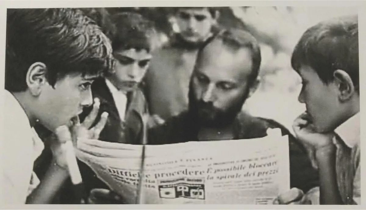 Don Sardelli cerca. Nel ’61, da seminarista, fa visita a don Milani e alla sua scuola. Poi va a Lione per conoscere l’esperienza dei preti operai. Nello stesso tempo, prende confidenza con il grande pensiero teologico, ama gli azzardi di Teilhard de Chardin, per decenni esiliato in Cina... Lungo questo percorso tortuoso, lontano dalle vie maestre, don Sardelli compie il suo apprendistato spirituale. Ora è pronto per andare incontro alla vita. Eccolo allora a san Policarpo. Ma ci sta poco. La vita della parrocchia non è per lui, la considera una “villeggiatura”, ne rifiuta gli agi e le consuetudini.