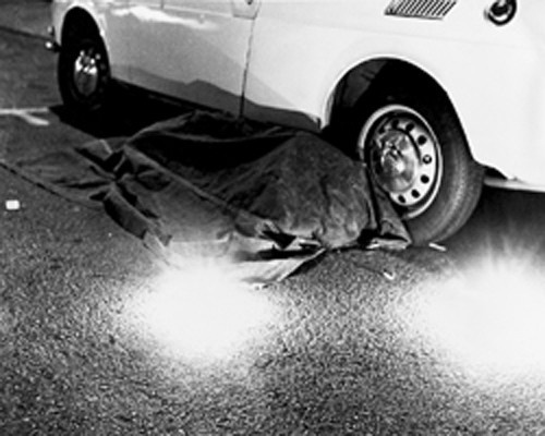 Trans-fixed. Il 23 aprile 1974 Burden si fa crocifiggere i palmi delle mani sul tetto di una Volkswagen che esce lentamente in retromarcia da un garage per mostrarsi al pubblico. Il rombo del motore sta per il dolore dell’artista. Dopo due minuti la macchina rientra nel garage e la saracinesca si abbassa. I riferimenti religiosi non sono solo nell’inequivoca postura, ma anche nel modo di offrirsi allo sguardo pubblico, come un’annunciazione o un presagio di morte. Se Burden testa e spinge all’estremo i suoi limiti fisiologici – la body art è per lui “an examination of reality, a calling into question of what it is to exist” [da un’intervista con Roger Erbert, 8 aprile 1975] – il vero bersaglio è il pubblico, messo in pericolo nel semplice esercizio dello sguardo. Come ha ben colto Peter Schjeldahl [in “The New Yorker”, 15 maggio 2007], chi assiste alle azioni di Burden resta indeciso tra l’educazione civica che lo induce a intervenire in una situazione d’emergenza e il taboo istituzionale di non toccare le opere d’arte.