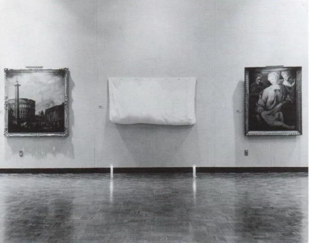 Chi si avvicinava intuiva che all’interno di questo bozzolo non vi era una scultura giacente in marmo, ma un corpo in carne ed ossa, quello di Chris Burden. Un’opera di Chris Burden con Chris Burden dentro. “I made a large chrysalis for my body. I was mounted on the wall, replacing one of the paintings”, riporta l’artista con una matter-of-factness tipica dell’arte concettuale, e che provoca non un’anestesia estetica ma un irresistibile effetto comico. Come una crisalide o, meglio, come un vampiro nella sua bara, Burden restò immobile, senza proferire parola, appeso al muro del museo per un giorno intero durante l’orario d’apertura, dalle 9 alle 17.
