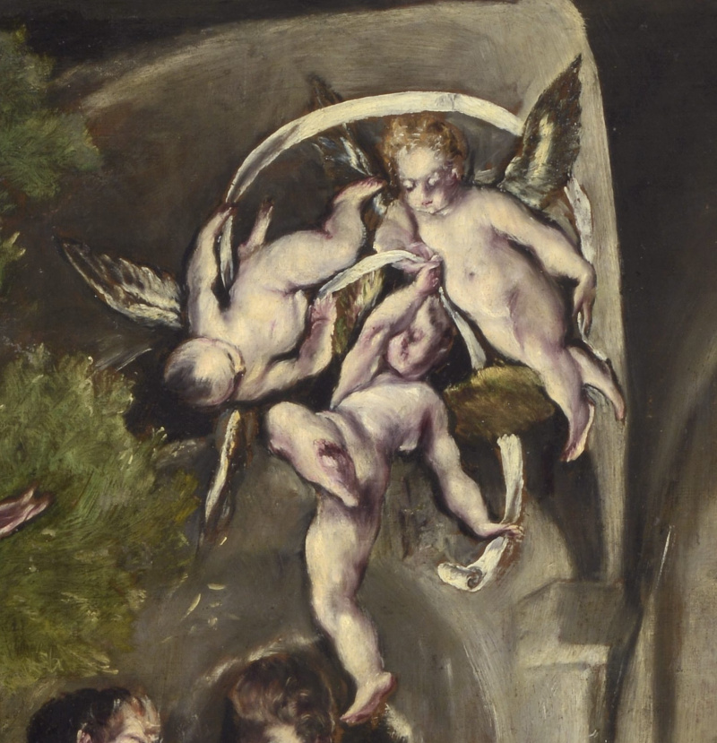 Nato a Creta nel 1541 da famiglia di fede ortodossa, Domínikos Theotokópoulos si forma su modelli di arte bizantina ma guardando ben presto ad alcuni pittori locali influenzati anche da Venezia, dove egli decide di trasferirsi nel 1567. Non si sa quando aderisce al cattolicesimo, ma deve essere abbastanza presto se si considerano alcune opere italiane dei primi anni settanta, come una Cacciata dei mercanti dal tempio e una Guarigione del cieco, che rispondono ai dettami del Concilio di Trento: i mercanti e il simboleggiando i ribelli protestanti, e il cieco gli eretici risvegliati alla vera fede, e probabilmente la sua adesione al cattolicesimo.