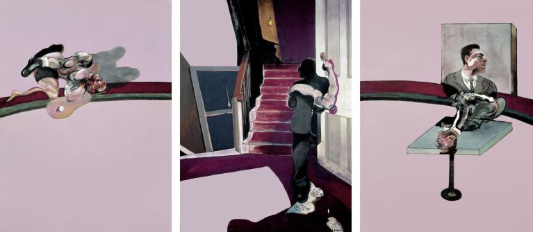 Francis Bacon, In Memory of George Dyer, 1971 Oil and dry transfer lettering on canvas je 198 x 147.5 cm Fondation Beyeler, Riehen/Basel, Sammlung Beyeler © The Estate of Francis Bacon. All rights reserved / 2018, ProLitteris, Zurich Photo: Robert Bayer.