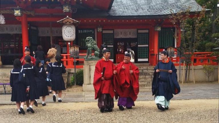 Il concetto di “sacrale”, quel silenzioso, adorante, stupito e timoroso atteggiamento che esprime la parola “numinoso”, sembra essere assente sia dalle strutture architettoniche dello spazio religioso giapponese, che dal modo che hanno le persone di rapportarsi ad esse. Mentre i chioschi di souvenirs religiosi di Nôtre Dame, a Parigi, o quelli presenti a Roma, appena fuori dalla Città del Vaticano sembrano – e sono – un’aggiunta posticcia, frutto del turismo di massa, che cozza contro il senso del sacro per cui quei luoghi furono pensati, essi non sono affatto estranei agli spazi cultuali giapponesi. Un distributore automatico di bibite, una macchina parcheggiata, un chiosco di souvenir non sono fuori posto in un tempio giapponese.