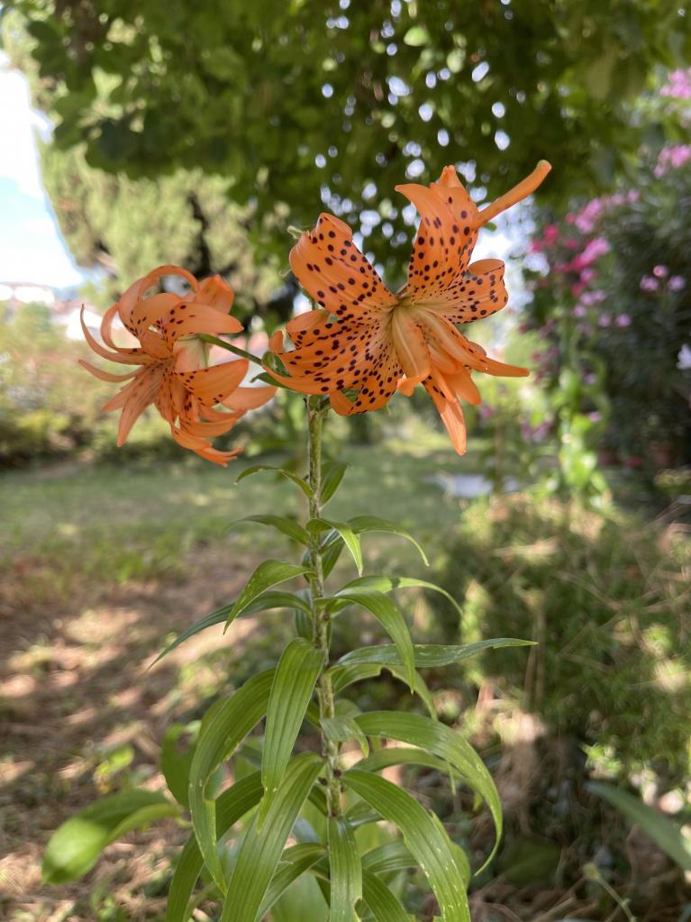 Sei sono le specie spontanee nel nostro paese tra le decine distribuite sul vastissimo areale della fascia temperata che dall’Asia va all’America passando per l’Europa. Il mio prediletto, benché poco affabile al naso (rara deroga al costume del genere), è il giglio martagone o “Riccio di dama” (L. martagon). Alberga in boschi radi di latifoglie e nei fertili pascoli montani dove dalle squame giallastre del bulbo s’erge un fusto robusto, striato di violetto, foglie verticillate al mezzo, sparse e ovate le superiori, con un racemo lasso di fiori penduli, cerosi, dalla foggia a turbante: sei i tepali assai revoluti, tinti d’invidiabile rosa antico spruzzato di porpora, altrettanti gli stami liberi e sporgenti con antere miniate di rosso.