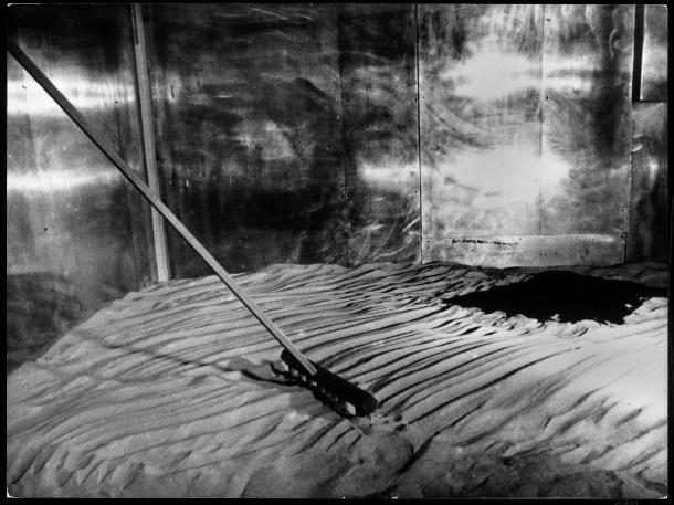 PERICOLO. L’opera più pericolosa di Gina Pane non fa parte delle azioni ma, curiosamente, dei progetti del silenzio del 1970: l’artista scala a mani nude un parete ripida e instabile della cava di sabbia di Ury, nei pressi della foresta di Fontainebleau. Invertiti i colori soliti delle azioni: la sabbia bianca e l’artista vestita di nero, un puntino perso nell’immensità di un paesaggio spettrale.
