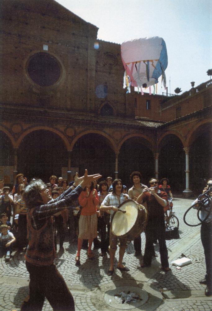 Al Dams ho trovato tanti compagni di strada. Ho trovato tanti maestri, in formazione, tra gli studenti. Il gruppo di insegnanti che si era formato era straordinario, con Celati, Eco, Guido Neri, Thomas Maldonado, Pierluigi Cervellati, Fabrizio Cruciani, Carlo Ginzburg, Piero Camporesi, Alfredo Giuliani… c’era gente di grande valore. Scambiarsi suggestioni e ricerche era elettrico. Penso che soprattutto i primi anni eravamo tutti in stato di trance. Facevamo lezioni in tre, con Celati, con Camporesi, nel mio corso. Entrava il sapere delle biblioteche e delle ricerche di Camporesi, la curiosità delle domande di Celati ancora tutto preso tra le fantasie di Propp e Bachtin, ancora libresco però molto utile e affascinato dalla realtà che entrava a fiumi tramite noi col Gorilla, che portavamo il fuori nelle aule dell’università. Si stava a bocca aperta. La sera ci ritrovavamo magari da Carlo Gajani, il pittore, o al ristorante o si camminava. Era un continuo scambiarsi sentieri, suggestioni. Eco scrisse a sorpresa un articolo su Marco Cavallo capendo come pochi la diversità della scrittura e di quel fare che, non volendo curare, curava. Quella roba è entrata nel Dams in una stagione unica dell’università italiana, di respiro verso l’aperto. Entravano tutte le suggestioni maturate attraverso i poeti, Hölderlin, i greci, Rimbaud, i poeti del novecento, gli italiani, i russi. Ci riempiva l’avventura della Nuova Musica, che però si stava chiudendo, si stava accademizzando. L’avanguardia stava diventando pompier, per cui era importante per me sfuggire, trovare interlocutori nella voce delle strade. Ecco perché dopo ho fatto Il Diavolo e il suo Angelo, a Perugia, nel Casentino, nel Carnevale di Venezia, a Roma, a Parigi, per confrontarmi con la strada, con i residui della strada, perché sentivo venire questa epoca di adesso, delle app, sentivo venire la rete, la fantasmizzazione dei corpi. E adesso infatti sto facendo un gioco diverso…
