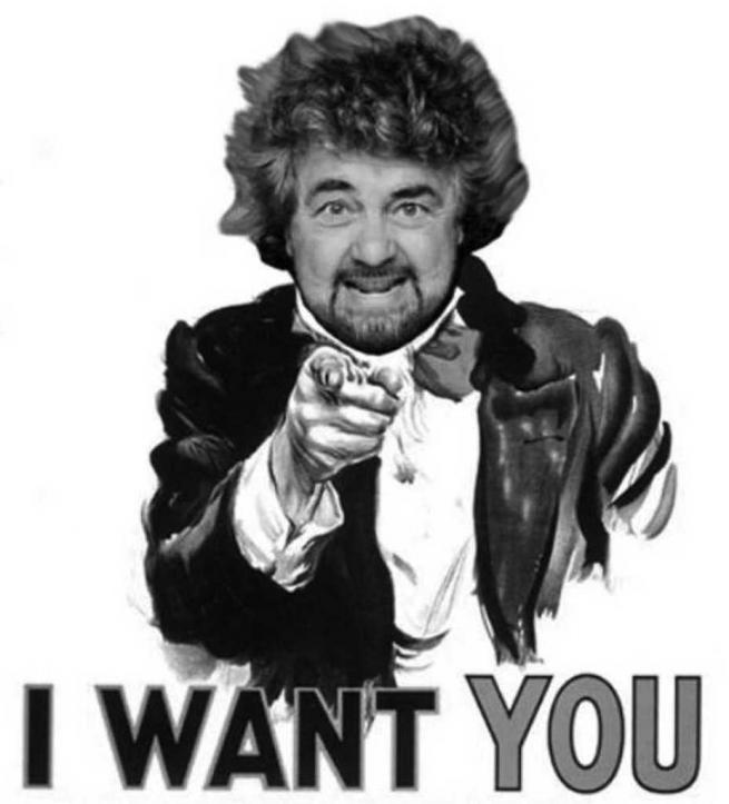 Ma a questo punto le somiglianze tra “la risibile ascesa di Beppe Grillo” e la vicenda dell’attore che colpisce in maschera si allontanano. Scaramouche si trasforma in giustiziere dopo la reazione termidoriana, colpendo (nel feuilleton “politico” di Wu Ming) bellimbusti neo-conservatori (gli Incredibili) di notte, nei vicoli, suscitando l’entusiasmo degli sconfitti sanculotti. Il comico genovese usa l’esempio, la gogna, l’aggressione, l’atto spettacolare e dimostrativo in un progetto più generale, basato sull’uso del web e delle sue possibilità di moltiplicare in rete le connessioni, il “dibattito”, l’organizzazione “alternativa”.