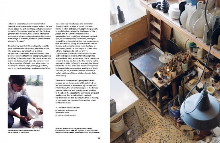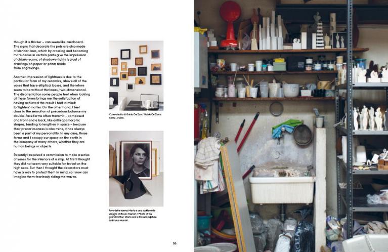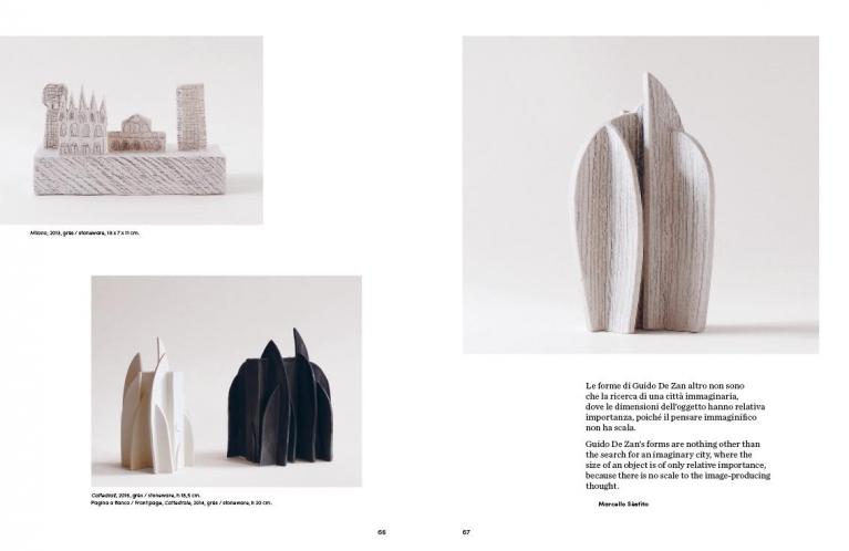 Soltanto nelle botteghe degli artigiani e negli studi degli artisti, abitate da visionari creatori e venditori di bellezza, la materia sembra assumere le vere forme alle quali era destinata. Come mostrano le incompiute possenti statue del ciclo dei Prigioni di Michelangelo Buonarroti, le figure sono già dentro la materia e aspettano soltanto la scintilla della creatività per essere liberate. “La materia è l’entità più passiva e indifesa del cosmo. Ognuno può plasmarla, modellarla, a ognuno essa obbedisce. Tutte le organizzazioni della materia sono instabili e fragili, facili a regredire e dissolversi. (…) Non esiste una materia morta, la morte è solo un’apparenza dietro cui si celano ignote forme di vita. La gamma di queste forme è infinita, i toni e le sfumature inesauribili”. Così scriveva lo scrittore ebreo polacco Bruno Schulz nel suo fantasmagorico libro Le botteghe color cannella (1934). Come suo padre Jakub, protagonista dei racconti, che nella bottega di tessuti all’angolo della piazza principale di Drohobycz, nella Galizia orientale, inventava forme folli e mirabolanti, Guido De Zan, nella sua bottega-laboratorio di fianco alla chiesa di San Lorenzo, nel centro di Milano, in mezzo alla confusione degli attrezzi sugli scaffali e al calore del forno, crea oggetti che sono pezzi di un bizzarro e poetico teatrino della materia che prende vita: “Difficilmente mi vengono in mente nuove idee quando sono lontano dal laboratorio. Solo lì dentro succede. Allora comincio a guardare i pezzi, quelli in lavorazione e quelli finiti e le idee arrivano senza fatica. Spesso sono varianti di pezzi che ho di fronte a me, più raramente si tratta di qualcosa di completamente nuovo”.