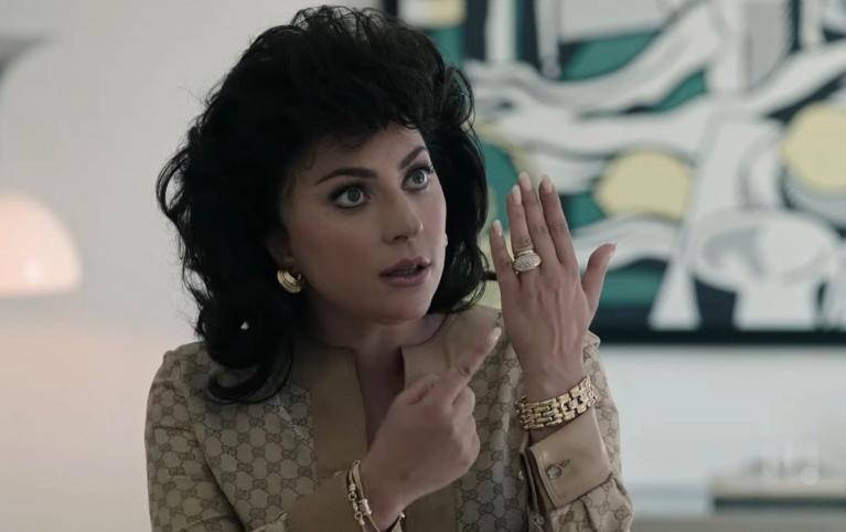 Tanta notorietà comporta una prima sfida nella costruzione di una narrazione filmica efficace: fare apparire veridici personaggi e situazioni. L’ampia documentazione e la relativa vicinanza temporale degli eventi ha reso fondamentale l’investimento non tanto sulla corrispondenza alla cronaca, bensì sull’ammobiliamento del mondo possibile di casa Gucci. La focalizzazione del discorso filmico su determinate figure organizza il susseguirsi degli eventi narrati e la coerenza degli elementi rappresentati, la cui acme si raggiunge con gli oggetti di moda “iconici” di Gucci, tra cui i mocassini con il morsetto ‒ unica scarpa indossata da Maurizio Gucci, anche durante un’epica traversata in moto ‒, o il foulard con il pattern “Flora” che diventa centrino per ostentare il troppo sfarzo e, in un secondo momento, bersaglio di dileggio in forma di ribellione all’opprimente patriarcato.