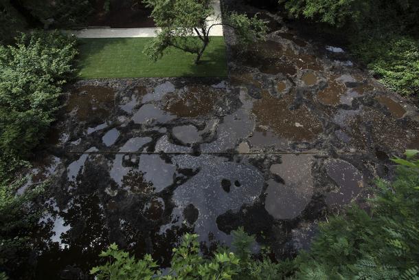 torba nera, terra vegetale, sabbia vulcanica, alghe acquatiche, muschio, ferro, legno, cellulosa, acqua dolce, metallo installazione site specific, Making Worlds / Fare Mondi, 53a Biennale di Venezia