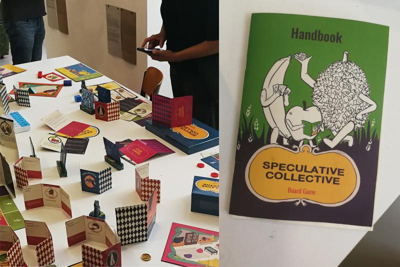 Incuriosisce il gioco da tavolo “collettivo speculativo” di Gudskul (Speculative Collective Board Game), un gioco di ruolo in cui i giocatori agiscono come membri di un collettivo d'arte: i partecipanti hanno l'opportunità di svolgere progetti personali e collettivi o aiutare i progetti degli altri negoziando con i membri della comunità. Il gioco fornisce l’occasione di sperimentare la cooperazione, la condivisione delle risorse, il problem-solving e i processi decisionali nella pratica di un’arte collettiva. La libertà di scelta e la collaborazione sono poste al centro di una riflessione sulle regole e le costrizioni imposte dalle culture egemoniche, che hanno oppresso o marginalizzato le più deboli. La necessità di decolonizzare le culture è un leitmotiv che accompagna il visitatore lungo il percorso espositivo, senza mai abbandonarlo.