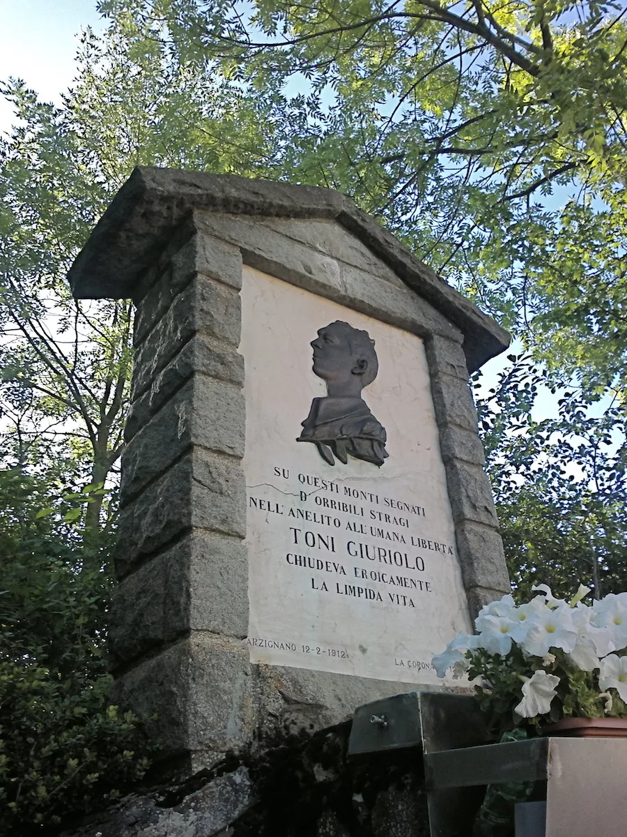 Il modo migliore per scoprire lapidi e cippi è andare in bicicletta. Questa lapide dedicata a Toni Giuriolo si trova sulla strada provinciale 66 che da Maserno (provincia di Modena) porta a Lizzano in Belvedere (provincia di Bologna). È una strada meravigliosa, una strada blu, pochissimo trafficata e che dona una vista sul crinale appenninico stupefacente. La lapide si trova in località La Corona, prima di Querciola. Toni Giuriolo, ricordato da Meneghello nel settimo capitolo di Fiori italiani e da Daniele Lucchetti nel film I piccoli maestri, con Marco Paolini nella parte di Capitan Toni, muore qui assassinato dai tedeschi il 12 dicembre del 1944 mentre cerca di recuperare i cadaveri di due partigiani morti. Il corpo è trovato da un suo compagno tra la neve con una bomba fissatagli sulla gamba dai soldati tedeschi. Accanto alla lapide c’è una fontana. Di solito d’estate ci sono piante di fiori intorno. È bello fermarsi con la bici a riempire la borraccia e starsene in silenzio a osservare la strada. E scoprire che esistono strade dell’anima. Le strade dell’anima hanno una compostezza candida, non svaniscono nei rimpianti, si nutrono di bellezza eterna. Bisogna cercarsele, però, queste strade.