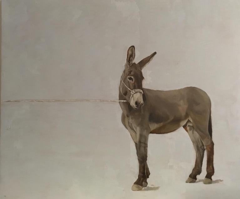 Marco Bettio, Un asino non è un cavallo, 2016, Olio su lino, cm 100x120, Collezione privata Courmayeur.