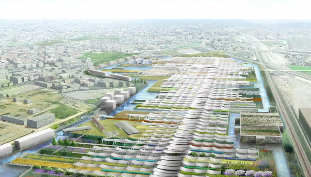 In realtà non si tratta di un’idea esattamente “rivoluzionaria”, dal momento che è una palese riedizione del progetto di Rem Koolhaas per il Parc de la Villette (1982) a Parigi: le cui molteplici “fasce” (bands, strips) di differenti paesaggi “naturali” sono sostituite – nel caso del Master Plan per l’Expo – da “lotti” rettangolari (blocks newyorkesi, o insulae romane, volendo proseguire la metafora formulata dagli stessi autori) che dovrebbero variamente ospitare “la foresta tropicale, la tundra, il paesaggio mediterraneo, i climi estremi dei Poli, il deserto…”.