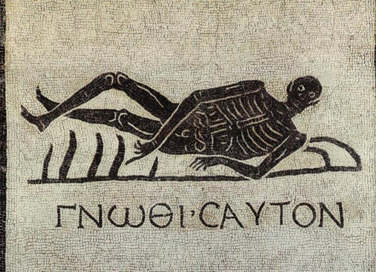 Conosci te stesso, mosaico funebre, inizio III secolo, Museo nazionale delle terme, Roma.
