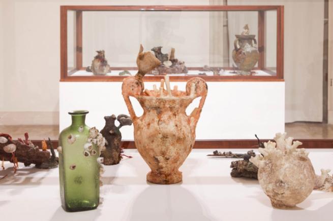 Al contrario, Mark Dion ha individuato proprio nella controversa relazione che comunque corre fra la collezione (fra l’artista, il collezionista, il curatore) con il contesto d’origine il movente del suo intelligente lavoro di archeologo del sapere. E’, la sua, un’indagine sulla costruzione delle tassonomie e dei nessi che di volta in volta legano gli oggetti e i significati che, certo, molto deve alla lezione di Foucault, la cui effige in terracotta, realizzata da artigiani napoletani, è non a caso fra quella dei dodici numi tutelari (The Cicerons) esposti come in un sospeso presepe (o è forse una panoplia di trofei?) nella sala che apre il percorso della mostra, rigorosamente scandito per temi. «Collezionismo, scienze naturali, vulcanologia, caccia, la nave HMS Colossus, Lady Hamilton»: così li elenca, burocratico, il comunicato stampa, purtroppo unica traccia di un’esposizione che, nata all’interno di PROGETTO XXI e, quindi, dalla collaborazione tra le Fondazioni Donnaregina e Morra Greco, avrebbe senz’altro meritato la memoria, non soltanto d’immagini ma soprattutto di pensieri, di un catalogo.