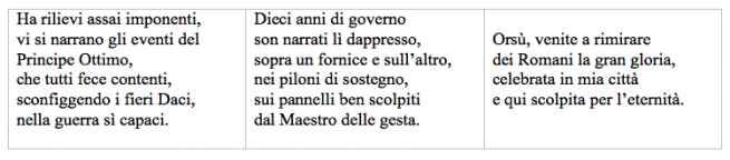 Nota: I rilievi dell’arco sono oggi molto danneggiati dalle intemperie e dall’incuria. Ci si augura che vengano presto restaurati e ricoverati in un luogo chiuso, sostituiti, come è stato fatto altrove, da copie.