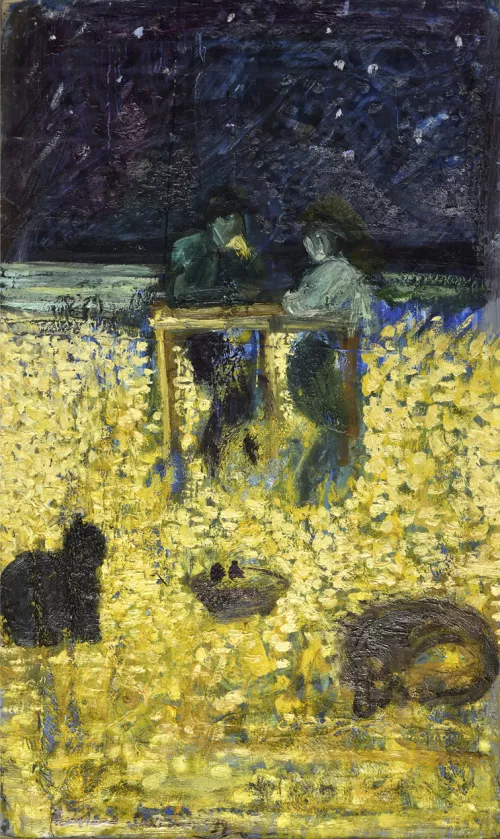 Ruggero Savinio – Nomini Bonnard. In Bonnard il paesaggio vero e proprio, quello che si offre allo spettatore come oggetto di contemplazione, è separato dall’interno per mezzo di un’apertura, finestra o porta. Ma anche l’interno è un paesaggio naturale, dentro il quale le figure si accartocciano, si divincolano per tendere all’integrità.