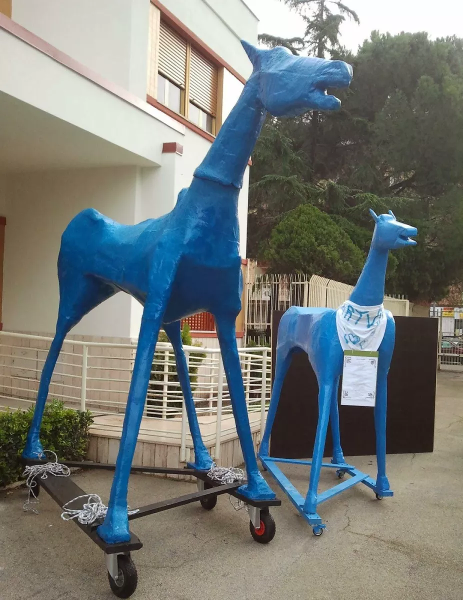 Nel primo padiglione che si svuota – segno tangibile del cambiamento in atto – si costruisce il cavallo azzurro di legno e cartapesta. Si chiamerà Marco Cavallo. Marco è il nome del cavallo in carne e ossa che trasporta il carretto della biancheria sporca, è molto vecchio, è destinato al macello. Gli internati, i teatranti, gli artisti, gli psichiatri, gli infermieri, i ragazzi della città mettono su un comitato per chiedere all’Amministrazione provinciale di tenere vivo il cavallo e fargli finire i suoi giorni da pensionato in una fattoria in Friuli. Il cavallo stesso scrive una commovente lettera al presidente della Provincia per avere salva la vita. Nasce un’azione teatrale (teatro civile?). Sarà Marco Cavallo, il cavallo azzurro, che porta dentro la sua pancia le lettere e i desideri degli internati, il primo e primitivo palcoscenico. Qui agirà e si metterà in gioco il desiderio risvegliato delle persone: la scoperta della libertà, del sentire amoroso, delle parole, di nuove possibili identità.