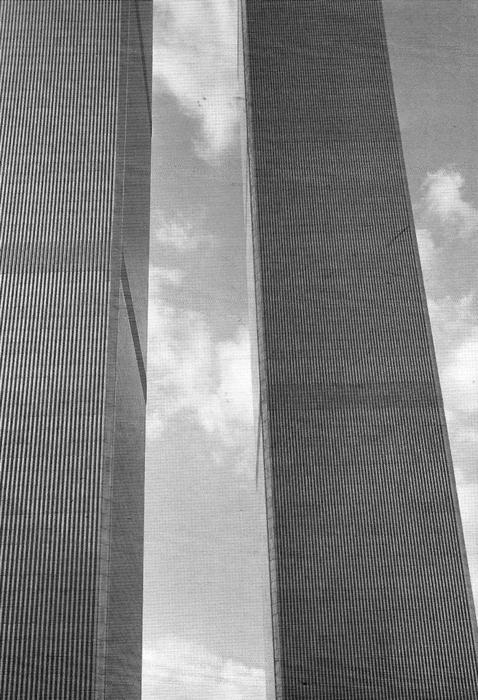 Una foto in bianco e nero, di piccolo formato (25,4 x 20,3 cm), stampata in venti copie, intitolata Anarchitecture: The Space Between o anche Untitled (Anarchitecture). La foto è anonima, ma non vi è alcun bisogno di didascalie: si tratta delle Twin Towers prima dell’11 settembre 2001. La foto risale al 1974 – appena un anno dopo l’inaugurazione del World Trade Center – quando viene esposta a 112 Green Street, uno spazio alternativo di SoHo, in occasione della mostra inaugurale del gruppo Anarchitecture. In opposizione alla politica autorale delle grandi opere architettoniche che ridisegnavano all’epoca l’orizzonte di Manhattan, come il World Trade Center di Minoru Yamasaki, Anarchitecture promuoveva l’anonimato della fotografia. Sappiamo pertanto che dietro all’obiettivo vi era l’animatore delle loro pratiche artistiche sperimentali e non strutturate, ovvero Gordon Matta-Clark.