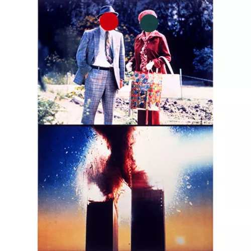 Guardare oggi questa foto vuol dire leggerla attraverso l’11 settembre – impossibile resistere al richiamo dell’azione differita o dell’après-coup. Questo cortocircuito tra passato e presente rende però sinistre le due X che Matta-Clark traccia sopra un disegno delle torri, con la scritta: “Erase all the buildings for a clear horizon”. Lo stesso vale per Two Highrises (with Disruptions)/Two Witnesses (Red and Green) di John Baldessari, una foto del 1990 con le torri gemelle che si sbriciolano. Nel caso di Matta-Clark, si tratta meno di un gesto di distruzione o cancellazione che di una metaforica obliterazione, in cui il segno lascia vivere quanto vuole negare. Il segno della matita nera sovrapposta sull’architettura è lo stesso segno che, nelle opere successive, affetterà letteralmente in due gli edifici suburbani con l’aiuto di una sega elettrica. Alla base di queste due pratiche artistiche, ritroviamo la stessa interrogazione: cos’è lo spazio architettonico? come rapportarsi agli spazi privati, alla loro inaccessibilità e non trasparenza? come resistere attivamente alla razionalizzazione dello spazio urbano?