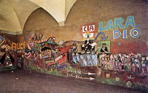 Certamente di scritte sui muri ce ne sono sempre state e, per quanto qualcuno le cancelli, riappariranno ancora; ma in quel momento mi sembrava di vedere, in quelle poche tracce rimaste, da un lato la fine di un periodo, dall’altro l’inizio della naturale restaurazione che segue ogni tentativo di rivolta. I bisticci linguistici, gli slogan e le risposte in rima potevano avere il fascino e la purezza delle didascalie del Corriere dei Piccoli e, al tempo stesso, la brutalità di un harakiri. Mi riferisco in particolare a quegli interventi che in passato avremmo detto, a ragione, goliardiche, ma che, a distanza di anni e dopo Umberto Eco, definiamo “attacchi semiotici”: quelle aggiunte o correzioni ad un’espressione grafica o verbale che ne modificano o ne invertono il significato originale, come avviene nel caso di “Il profitto è lavoro non pagato”, a cui qualcuno ha aggiunto in calce “e il profiterol è un dolce al cioccolato”. Se nel ’68 si voleva l’immaginazione al potere, dieci anni dopo la si voleva “al podere”, e la lotta durainvece chesenza paura, diventa “contro natura”o, al limite, “per la verdura”. C’era in giro un’aria di cambiamento che si serviva anche della sperimentazione linguistica fatta di paradossi e nonsense, fiorivano i limerick. L’autoironia era talmente ripiegata su se stessa da avvicinarsi al suicidio ideologico.