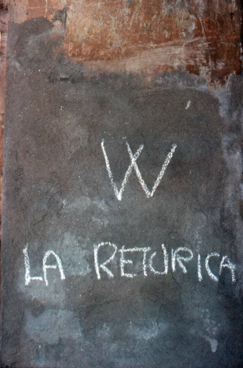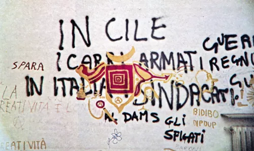 Dopo i fatti di marzo e il successivo raduno di settembre, la città riprendeva lentamente la sua normalità e il suo aspetto abituale. Venivano cancellati i grandi murales, lunghi decine di metri sotto i portici, tolte le scritte dai muri e dalle colonne, ridipinti i corridoi e le aule dell’Università. Mi è sembrato il momento di fotografare, prima che scomparisse del tutto, quello che ancora non era stato fotografato, vale a dire le scritte più piccole fatte con pennarelli, gessetti o addirittura matite, meno visibili e perlopiù nascoste agli inviati speciali. Per un po’ di tempo, fino alla primavera del ’78, ho avuto sempre con me la Canon col suo bel corredo di filtri e obiettivi, e alla fine ho raccolto circa 150 immagini, se pure in modo non sistematico. Le diapositive sono rimaste parecchi anni in un cassetto; le ho poi riordinate qualche anno fa nel sito web www.benzoline.it