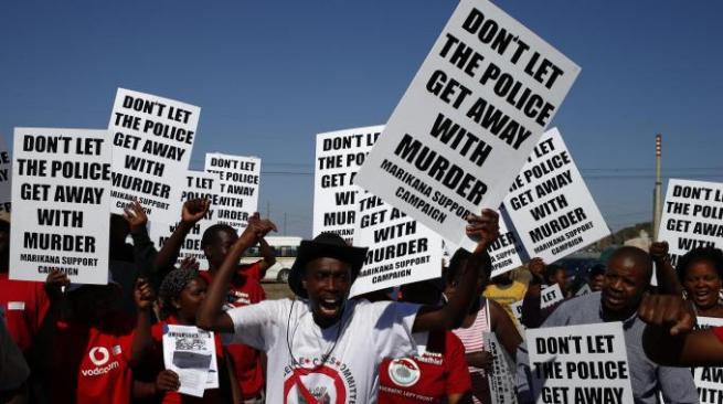 Siamo in un contesto mediatico particolare: in presenza di un fatto fortemente sottaciuto per non dire ignorato dai media occidentali. Nel corso di un precedente sciopero, nell’agosto del 2012 nella cosiddetta “cintura del platino sudafricana” (la Bushveld Igneous, anche detta “platinum belt”, geograficamente situata nella parte a ovest della capitale politica sudafricana: Pretoria) la polizia aveva ucciso 36 minatori e ne aveva ferito altri 78 a Marikana-Rustenburg, area in cui si concentrano la maggior parte delle miniere dei “platinoidi”, con una violenza che tristemente ricordava i massacri e le violenze simili a quelle accadute a Soweto nel periodo dell’apartheid. Ma ancora più triste e difficile è stato vedere numerosi poliziotti neri aprire il fuoco contro minatori, anch’essi neri. I più anziani di noi, dovranno tornare ai classici, nel tentativo di cercare una spiegazione a ciò che è accaduto. Suggerisco solo qualche nome: Primo Levi, Simone Weil, Hannah Arendt, Giorgio Agamben.