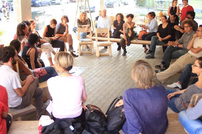 6 settembre 2012, Cantiere Barca, portico di Via Anglesio. Assemblea Pubblica dei cittadini con l’Assessore Ilda Curti, la Presidente della VI° Circ. Nadia Conticelli, la Direttrice del Goethe Institute Jessika Krantz Magri, le mediatrici del progetto giulia Majolino e Alessandra Giannandrea, i curatori a.titolo e Maurizio Cilli e il collettivo berlinese Raumlabor. Foto Aurora Meccanica.
