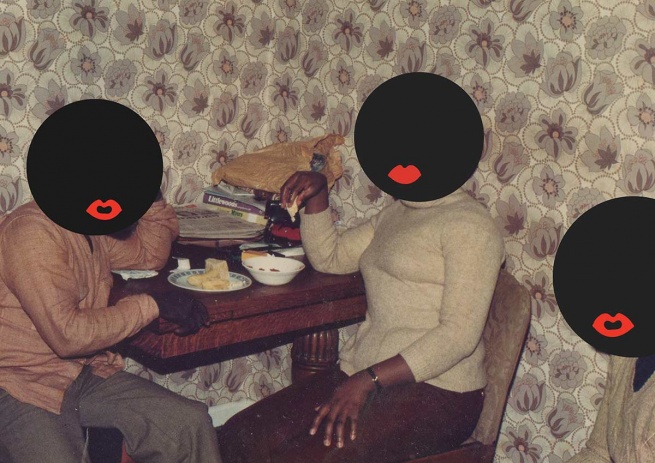 Living and working in London, Achiampong’s practice is arguably most recognized for his Cloudface motif. Exhibited in a performance at the Tate in London, in addition to an earlier collage series titled Glyth, this historically inspired racial motif, speaks directly to Achiampong’s interest in representations of identity. Drawing on Robertson’s Golly, V and his Guy Fawkes mask in V for Vendetta and Laughing Man in The Ghost Series, Cloudface has become a vehicle for initiating discussions on prejudice in its many guises. Furthermore, the process of conceptualising Cloudface reinforces the significance of this inherited archive that Shields alludes to, for Achiampong’s practice.