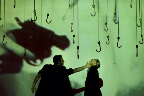 Ed è proprio museo la parola chiave per attraversare la proposta del maestro fiammingo: non semplice esposizione inamovibile di una sequenza limitata di opere, ma percorso dinamico e interattivo che attinge a un bagaglio culturale condiviso. È un viaggio nel teatro degli ultimi due secoli – da Wagner a Ibsen, fino a Pina Bausch e alla vivente Mnouchkine – riproposto attraverso un fluire lento ma ininterrotto di parole e immagini, che colpisce e ipnotizza lo spettatore. Chi pretende di rintracciare una narrazione lineare o una successione logica delle scene non può che restare deluso: Fabre mescola le carte, altera la prospettiva, prova a proporre un ritmo di visione diverso dall’ordinario.