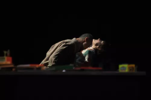 Uccellini ci parla della morte di chi è vicino, del lutto, ma anche di come attraversarlo, ci parla di cosa resta dei morti tra noi vivi e di come sia importante vedere l’oltre, questo “fuori” allegorico del bosco che circonda la casa. Il mondo animale che lo abita è come oggi lo pensiamo non solo incanto, bellezza, ma realtà minacciata dai disastri climatici, dunque a rischio sparizione. Così quelle riprese notturne di cervi o lupi appaiono come proiezioni di futuri fantasmi. Sia i piani della vita che le epoche sono in un ordine del tempo alterato, non lineare, quasi incarnazione dell’ipotesi dei fisici quantistici dei “moltimondi”. È uno dei tratti centrali della ricerca de lacasadargilla. Così quando Luka, il mattino dopo, sciolta la tensione tra i fratelli, trova la vecchia scatola con i fischietti-richiamo per gli uccelli e dice “ce ne sono di alcuni esemplari ormai estinti” si squarcia la possibilità non solo, appunto, dell’estinzione delle specie, ma anche che Luka Theo e Anna siano fantasmi essi stessi di un tempo forse futuro, sicuramente non collocabile. O che siano personaggi del libro che stava scrivendo la sorella, quello che Theo dice ora di “voler riscrivere” (per avere “la sensazione di essere ancora con lei”). Il romanzo è aperto sul tavolo, davanti a noi e a loro, e l’esattezza con cui la voce narrante introduce le scene, con accurata terminologia scientifica e ornitologica, rende indecidibile quale sia la dimensione teatral-narrativa in cui collocare ciò che vediamo e nell'incertezza deve rimanere. Allo stesso modo, tenere spesso in penombra la scena sembra alludere alla possibilità di scorgere quel che il poeta Charles Simic chiama “l’infraordinario” delle cose del mondo, ciò che è vivente e ciò che non lo è. I due fratelli e Anna giungeranno al termine di una loro notte tortuosa, attraversando il bosco della memoria, che nasconde un altro trauma ulteriore, sempre suicidario. Sono tre anime ingabbiate dal dolore. Per loro la mutazione avviene a partire dalla percezione che Anna ha di un orso che sente attorno alla casa. Uscendo, di fronte a quel fuori, può iniziare un’esplorazione liberatoria dei loro territori psichici, rimescolando l’idea di presenza e assenza. Si arriva al cuore del teatro, luogo in cui possiamo fare quell’esercizio fondamentale per le vite di tutti che è “ri-scrivere e reincarnare la nostra psiche”, sottolinea nelle note Ferlazzo Natoli. E forse, potremmo aggiungere, le molte anime che ci abitano.