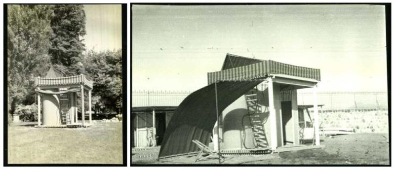 Anche Ugo La Pietra, nel 1985, si è cimentato nel progetto di una cabina articolata, come e ancor più di quella di Cosenza. L’ha chiamata Cabina galleggiante, perché fungeva al contempo da cabina e da natante, e aveva un tetto a terrazza dove prendere il sole e dal quale ci si poteva anche tuffare, una volta preso il largo. Questo progetto era nato all’interno di una serie di mostre e di seminari sul tema della Cultura balneare, per cui La Pietra aveva anche fondato a Cattolica l’Osservatorio di Cultura Balneare, in anticipo come sempre sui tempi, “per studiare e approfondire questa particolare cultura marginale e proporre per la prima volta un design territoriale”, come si legge sul suo sito.