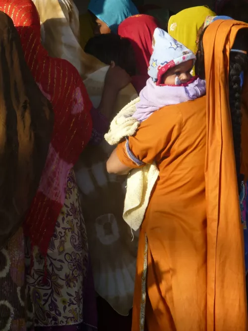 Dà ancora da mangiare a quattro di loro. Seduta su un seggiolino cubico foderato da una stampa floreale, china sulla tawa nella cucina buia per l’interruzione della corrente - un matterello in una mano, un roti pronto per la cottura nell’altra, impressionante donna-catena di produzione. Suda e maledice quei bhenchod del governo per l’estenuante razionamento della luce quotidiana.
