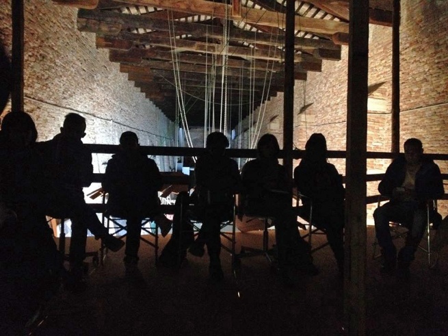 Aiutati e guidati da Emilio a prestare una concentrazione maggiore, non solo alla fase onirica, ma anche ai momenti che ne precedono e seguono la manifestazione, ci siamo raccolti su una struttura sopraelevata nello spazio dei Magazzini del Sale. Sospesi sopra il livello del mare, come in un nido che un uccello meticolosamente costruisce per tenersi al riparo, in maniera timida e confusa, e spesso in una lingua di cui non si è completamente padroni, il racconto dei nostri sogni ha innescato ancora una volta in me la curiosità di percepire le persone che avevo di fronte e le loro mutevoli sfumature. Prendeva forma un processo di condivisione in cui la parola si fa strumento per un'immagine che non si perde nell'immanenza della visione ma attiva quella tensione necessaria a tenere viva l'immagine interiore, non figurata. Un'immagine che funzioni come guida, da non restituire per forza alla dimensione fisica della visualità.