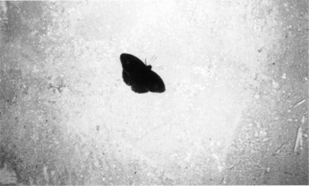 Come nelle fluografie di Darget, l'occhio coglie il rallentatore di una traccia luminosa, percezione auratica dell'immagine il cui movimento è, in realtà, più rapido e più inteso di quello di ogni scorrimento cinematografico: immagine-farfalla e rallentatore. Poiché il montaggio è sia nell'immagine sia tra le immagini. Come prima il lontano e il vicino si scambiavano, così ora il rallentatore – le “tracce fantasma” – e la velocità di un battito d'ali si sovrappongono. E per mostrare questo montaggio di spazi e tempi proprio dell'immagine Sebald mette nel mezzo di questa lunga descrizione una fotografia senza titolo e senza commento dell'ombra di una farfalla abbandonata, immagine scura in contrasto con le parole di Jacques: qui, il fenomeno luminoso di qualche centinaio di farfalle di notte vale per l'ombra di una sola.